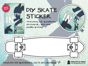 Art: Order a class set of free skateboard activities from admin@fremantlepress.com.au. Make sure you send us your name, school, address and the number required. While stocks last! Students design their own skateboard deck then cut it out. The deck has an adhesive back so it can be used as a sticker. Alternatively click on the skateboard deck below and press print.