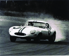 Bob Jane at the wheel of the E-Type Lightweight during its racing days.