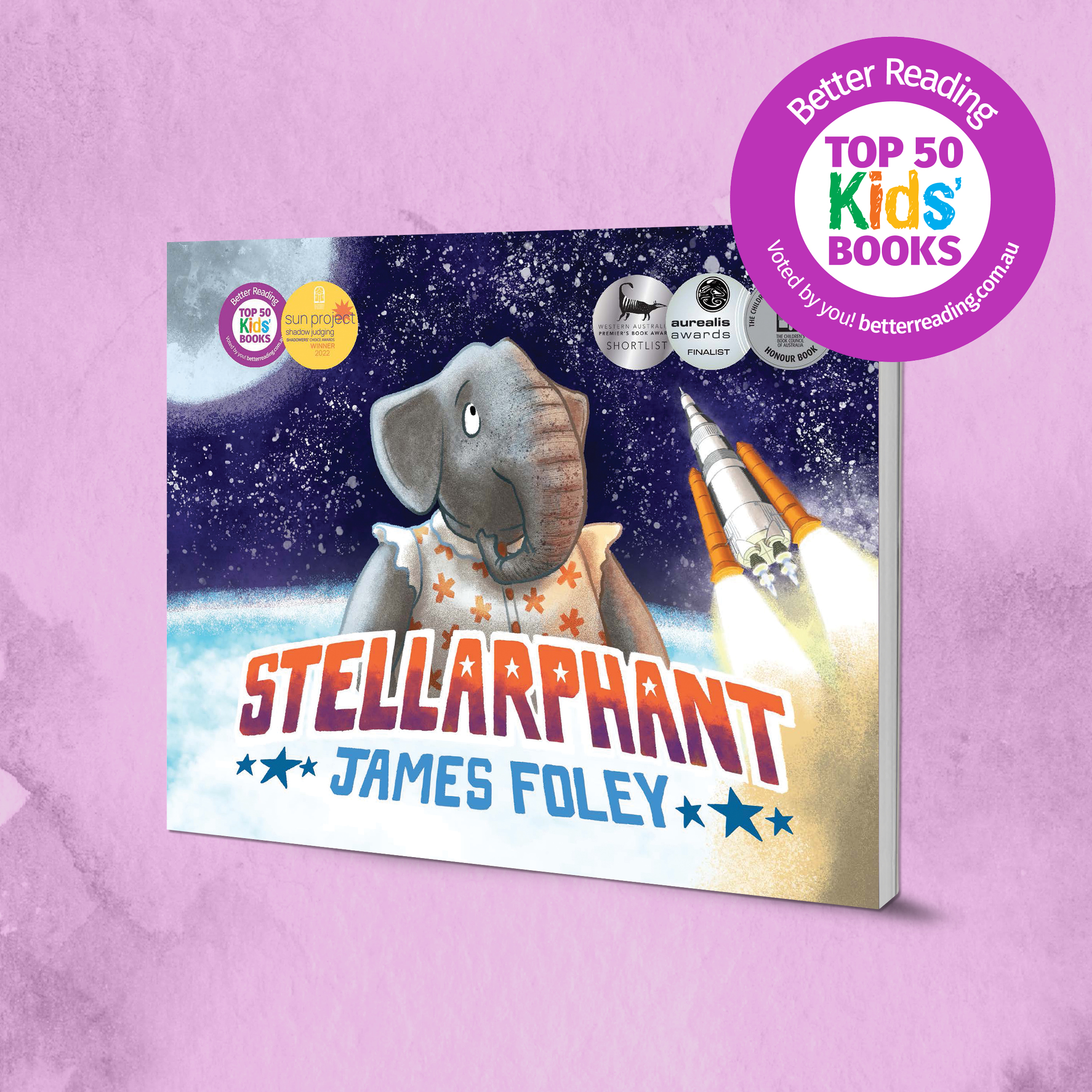 James Foley’s Stellarphant continues to enjoy its time in the sun with another sticker added to the crowded front cover of this very popular children’s book. Today’s accolade is the book’s entry – at number 36 – on the 2022 Better Reading’s Top 50 Kids’ Books list.
