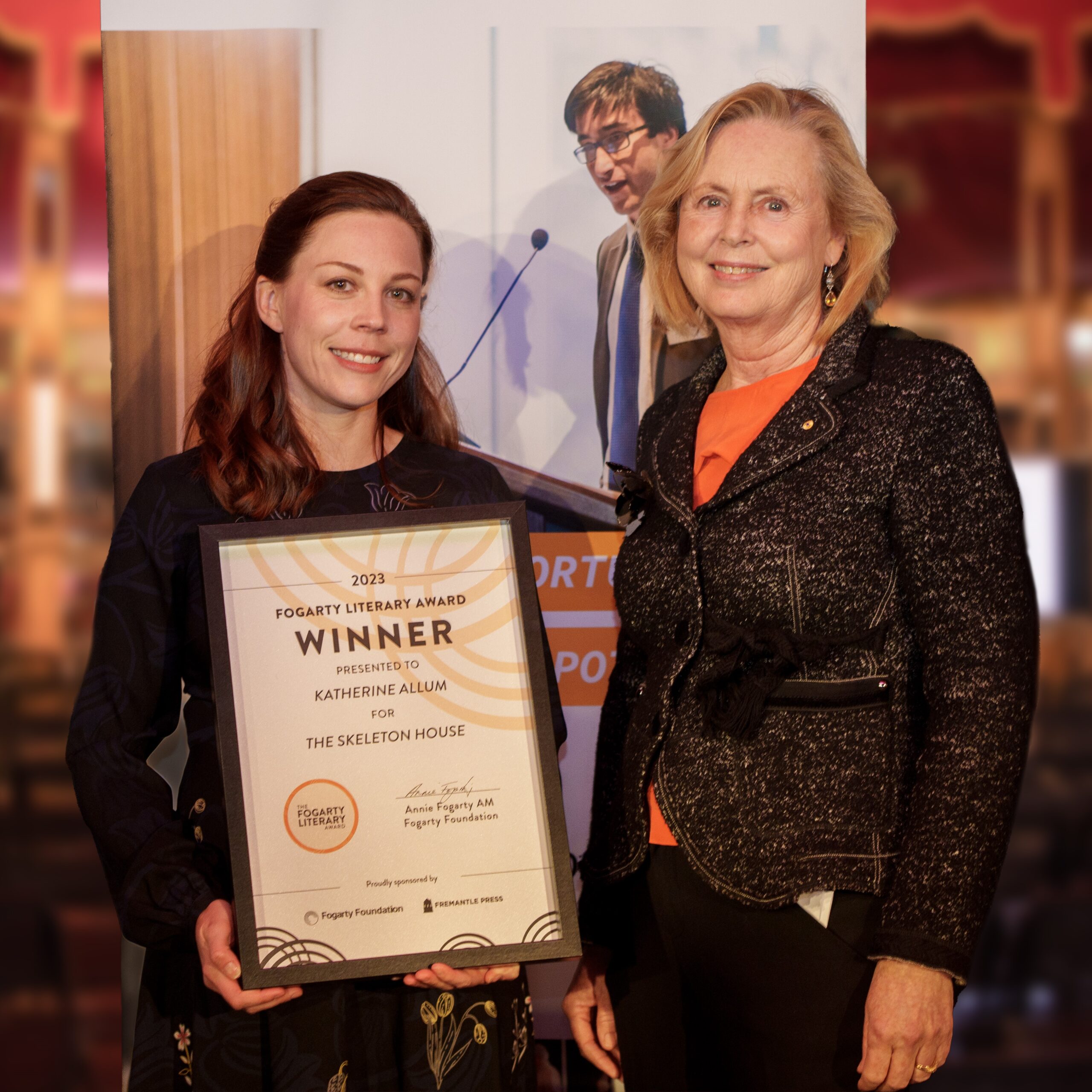 Annie Fogarty also pointed to the 2023 winner of the Fogarty Literary Award, Katherine Allum, as representing a case study in the power of the award to attract great writers to WA. Katherine and her husband Michael Burrows initially based themselves in London but Burrows’ shortlisting for the Fogarty Literary Award, and the subsequent publication Where the Line Breaks, was one of the factors that drew the pair back to Perth. While Michael went on to be named one of the Sydney Morning Herald’s Best Young Novelists, Katherine entered and won the 2023 Fogarty Literary Award for her tensely atmospheric novel The Skeleton House.