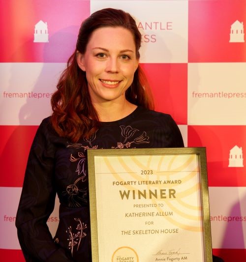 Katherine Allum won the 2023 Fogarty Literary Award at the Edith Spiegeltent at ECU on Thursday 25 May. Allum receives a $20,000 cash prize from the Fogarty Foundation and a publishing contract with Fremantle Press for her winning manuscript The Skeleton House.