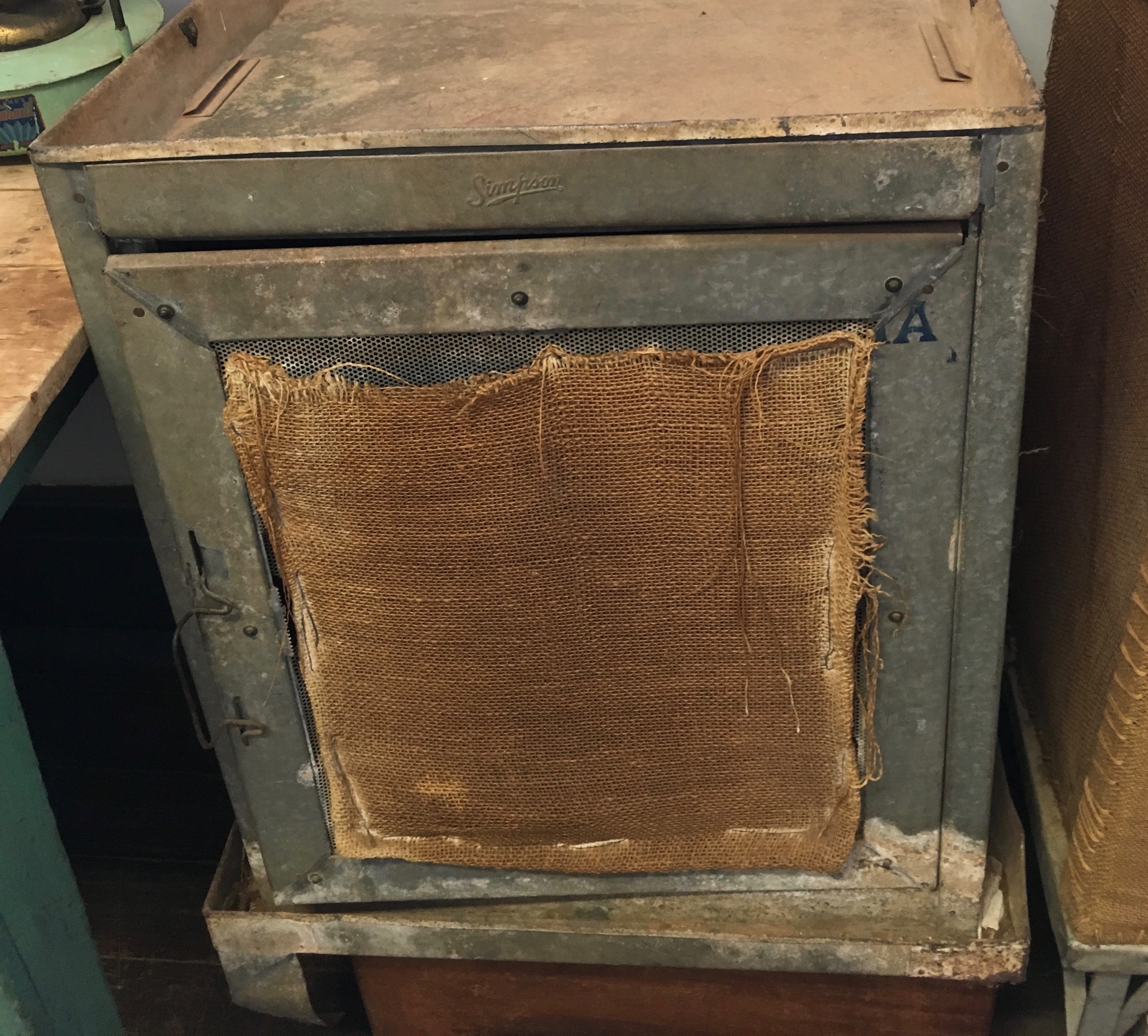 Living with intense heat and pesky flies made it difficult to keep fresh food from spoiling. To keep this precious commodity edible, the Coolgardie Safe evolved. No-one knows who made the first one, and they vary according to the materials lying around, but they all work on a system of evaporation (just like some modern air-conditioners) and recycled water. Basically, a length of hessian was draped over the top and sides of a metal box. A tray of water was placed on top. Small holes punched into the tray allowed the water to seep into the hessian and keep it wet. The constant desert wind blowing through the wet hessian kept the inside of the metal box cool and the water slowly dripped into another tray – without holes – at the bottom. Usually a door of some sort would be fitted, or cut in, to one side, making a secure cupboard for storing fresh meat and other items. No good for making iceblocks, but better than having to eat flyblown food.