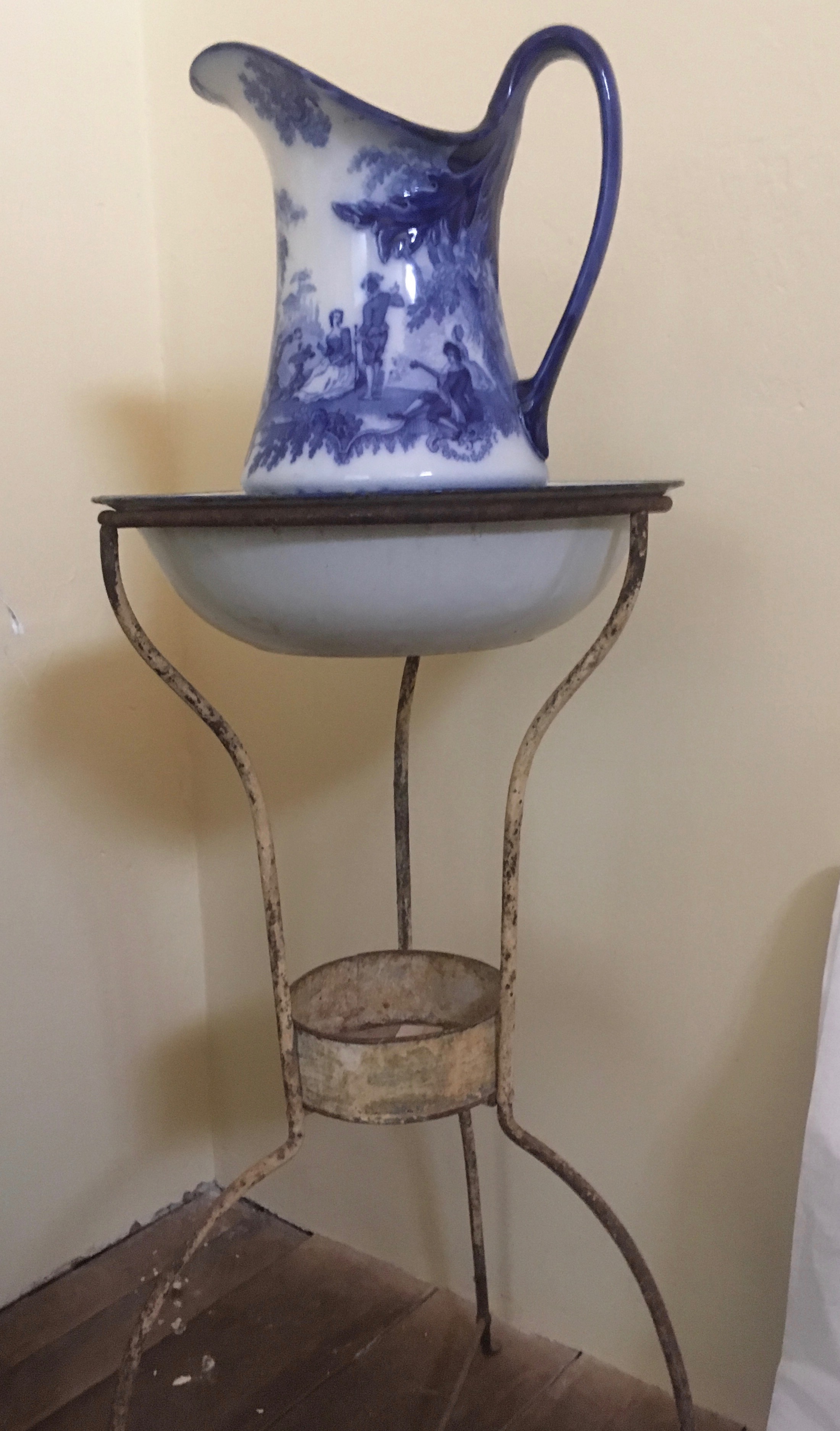A photo of Clara's bedroom with a porcelain jug on a stand