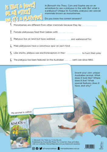 Have you ever wondered ‘what kind of animal is a platypus’? This activity sheet incorporates biological science, English and visual art using research, literacy skills and creative design skills.