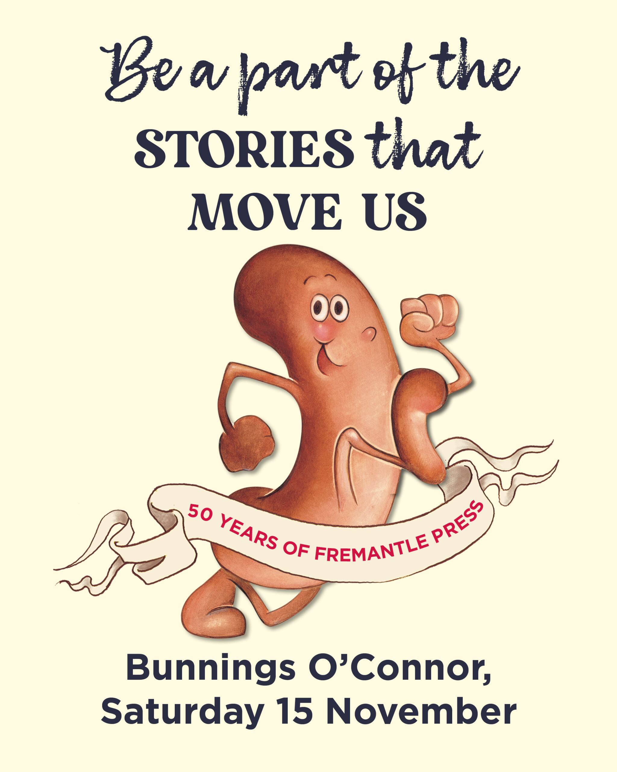 A sausage went for a walk to Bunnings … and so should you! Come along to Bunnings O’Connor on Saturday 15 November as Fremantle Press runs the Bunnings Sausage Sizzle.