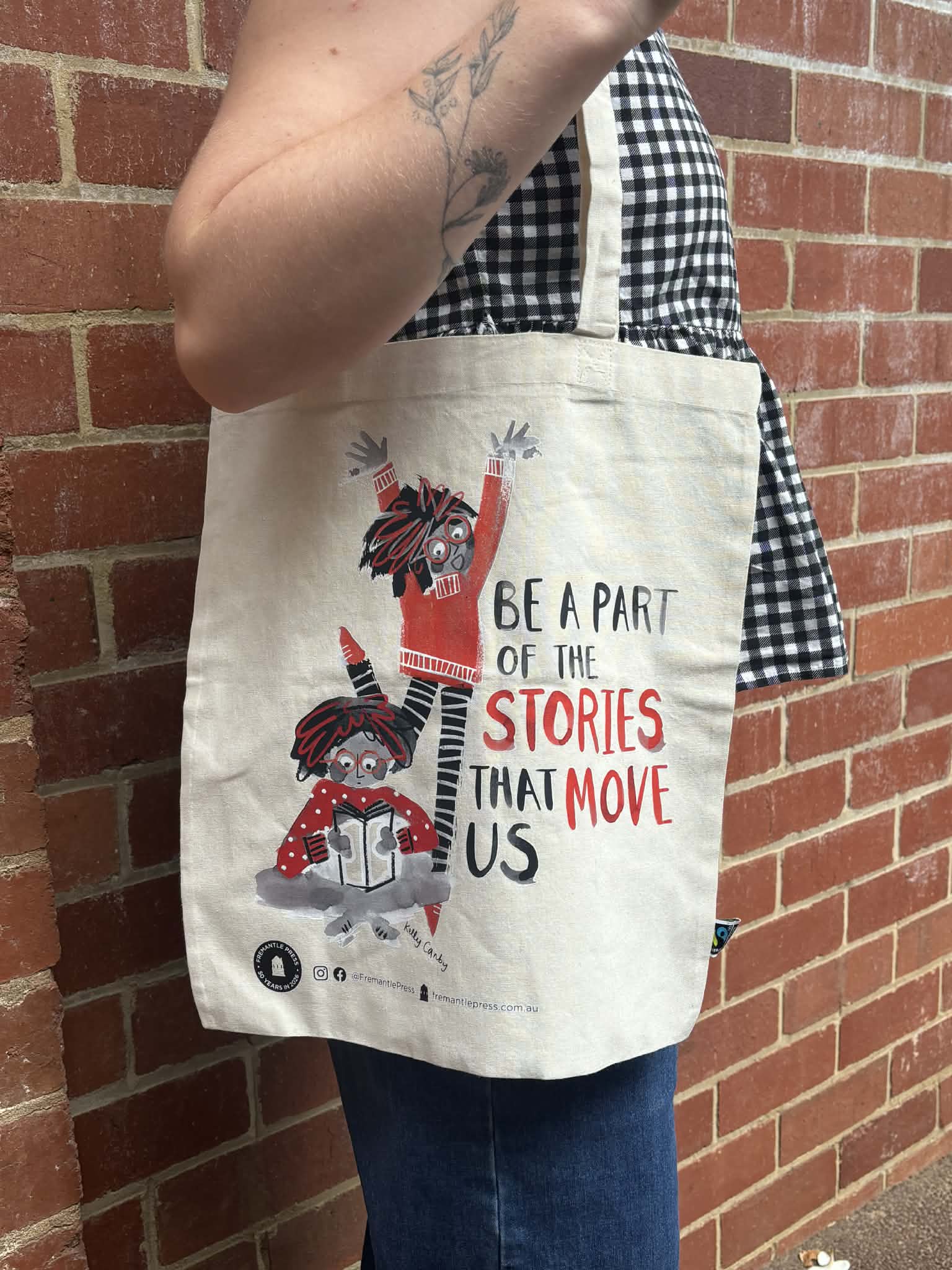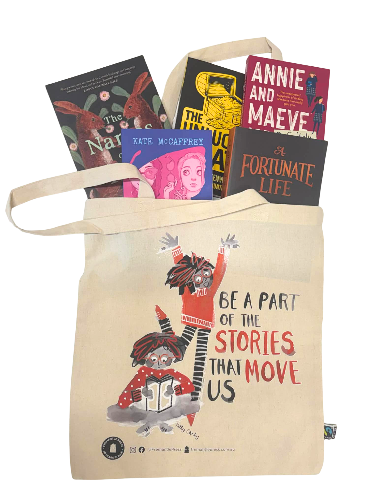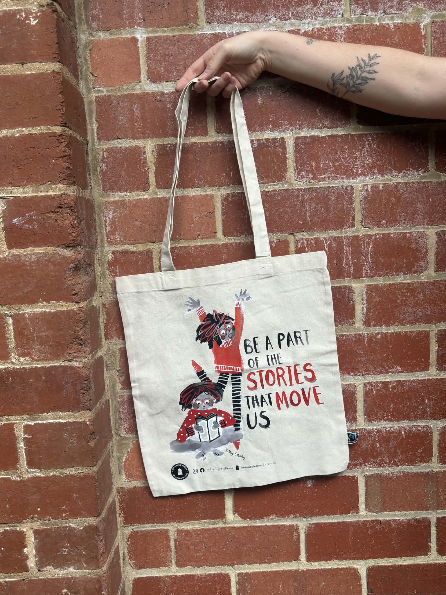 Celebrate 50 years of Fremantle Press with this limited-edition tote bag, featuring original artwork from WA author–illustrator Kelly Canby. A bright and playful piece designed to go wherever your stories take you.
