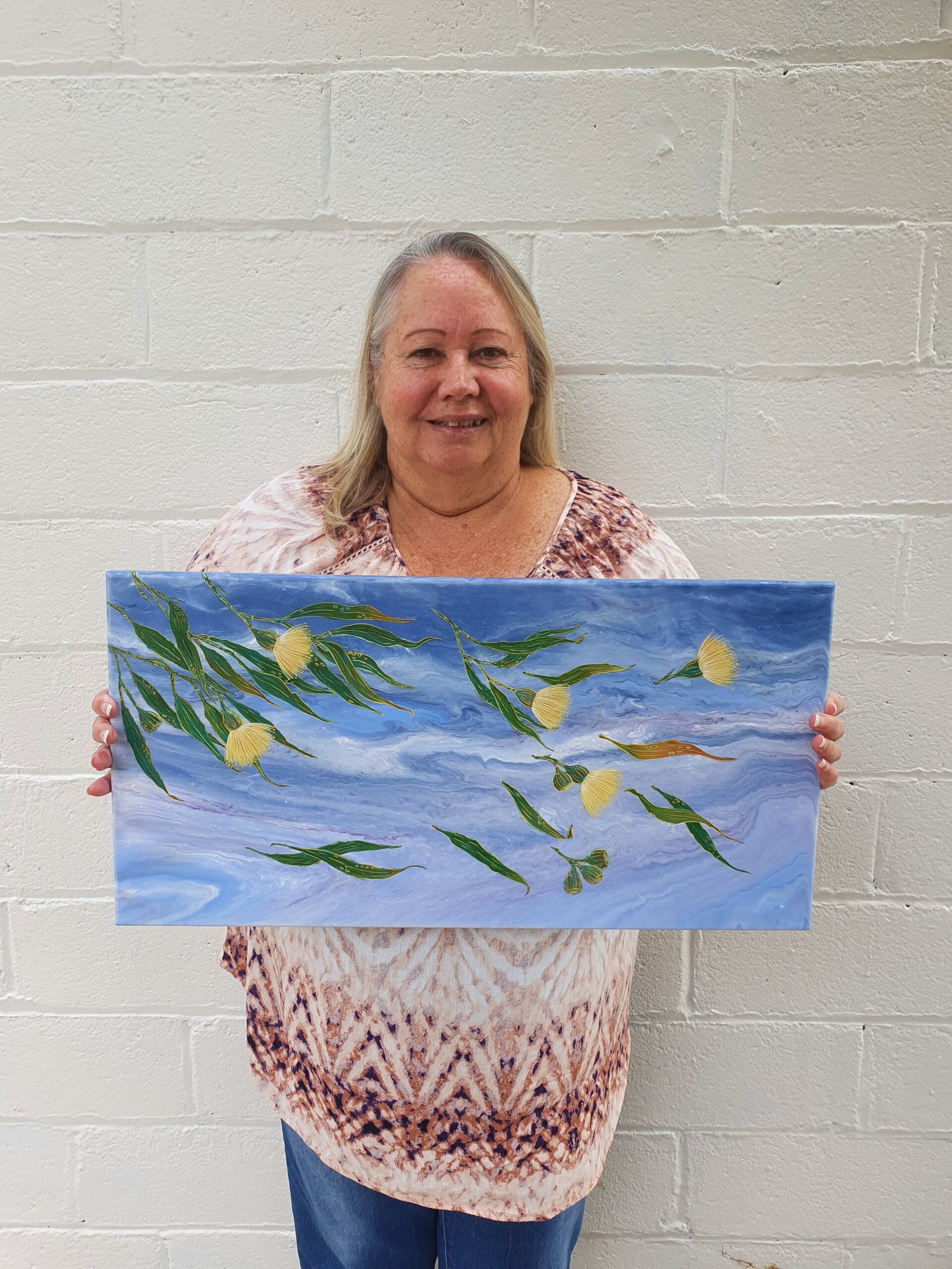 Leanne Zilm is a descendant of the Wudjari and Goreng Noongar tribal groups, who was born in 1962 in Katanning, Western Australia, and currently lives in Rockingham. Leanne started painting in 2016 when her mother, who was a landscape artist, encouraged her to take up painting. Leanne works with acrylics, and the backgrounds for her paintings are created using an acrylic pour technique. Her art is inspired by the natural environment, the ocean, sunrises, sunsets, and the native flora and fauna that abounds in the Fitzgerald River National Park and Bremer Bay region in the South-West of Western Australia.