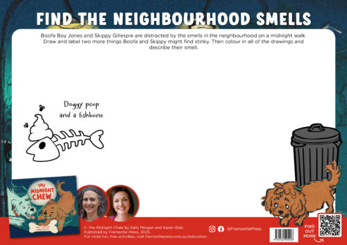 Get kids drawing and giggling with a new hands-on activity inspired by the new picture book The Midnight Chew by Sally Morgan and Karen Blair. This activity will have kids imagining the stinky things dogs like Boofa Boy Jones and Skippy Gillespie might find delightful. Draw the objects, label and colour them, then describe the […]