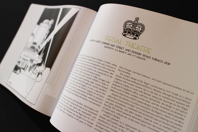 We were commissioned to edit, design, index and print the Trust’s publication celebrating Western Australia’s art deco cinemas. The challenge was to incorporate text, illustrations and diverse photographs of varying quality into a balanced design that honours our state’s picture palaces.